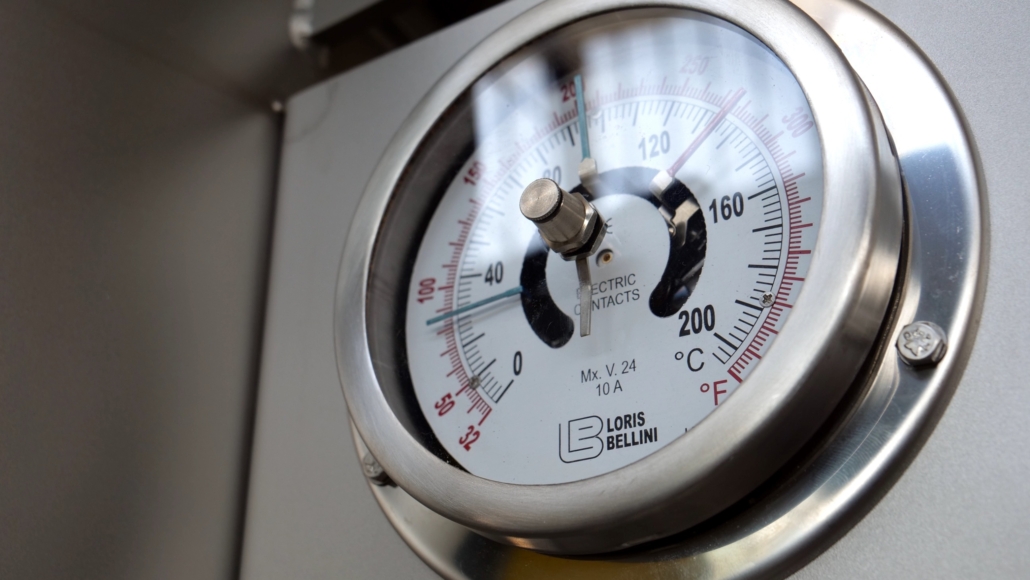 en el panel de control al inicio del ciclo y se mantiene automáticamente constante a lo largo de todo el proceso mediante controles termostáticos y válvulas neumáticas modulantes